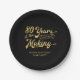 Retro 80th birthday personalised party paper plates featuring the title 80 YEARS IN THE MAKING in a calligraphy script typography which incorporates his or her birth year within the design and your custom text below (the sample shows HAPPY BIRTHDAY NAME) in gold and your choice of background colour (shown in black). ASSISTANCE: For help with design modification or personalisation, transferring the design to another product or if you would like coordinating items, contact the designer BEFORE ORDERING via the Zazzle Chat MESSAGE tab below or email makeitaboutyoustore@gmail.com.