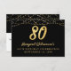 RSVP enclosure card to include with an 80 birthday party invitation featuring retro typography and string light in black and gold. ASSISTANCE: For help with design modification or personalisation, transferring the design to another product or if you would like coordinating items, contact the designer BEFORE ORDERING via the Zazzle Chat MESSAGE tab or email makeitaboutyoustore@gmail.com.