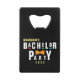 Colourful 90s retro bachelor party bottle opener for a groom or groomsman. Personalise it with your event details.