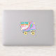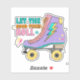 Colourful retro 90's laptop contour sticker with a neon purple, teal, yellow, orange, and pink design of a rollerskate with a lightning bolt and text, "Let the good times roll."