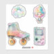 Retro stickers featuring a collection of pastel 80s and 90s favourites including roller skate, and more.