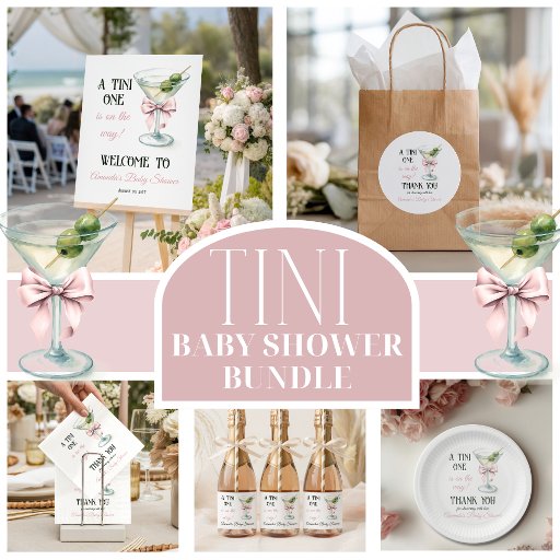 Retro A Tini One Martini Pink Bow Girl Baby ShowerDesigned by Tetiana Domushkina