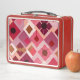 This artwork features an abstract argyle pattern in vibrant colours like poppy red, primrose pink, bronze brown, and damson mauve. It evokes a delicate, airy feel, reminiscent of whimsical illustrations.
