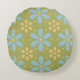 Retro Abstract Blue and Yellow Flowers on Green Round Cushion