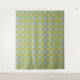 Retro Abstract Blue and Yellow Flowers on Green Tapestry