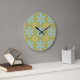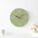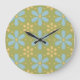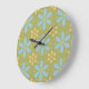 Retro Abstract Blue and Yellow Flowers Pattern Large Clock