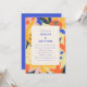 Retro Artsy Abstract Botanical Wedding Invitation in Blue, Orange, Pink, and Yellow with RSVP Online Details