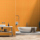 Retro abstract pattern of orange plaid style. Vintage wallpaper of abstract orange chequered pattern.