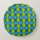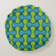 Retro Abstract Geometric Pattern in Blue and Green Round Cushion