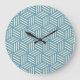 Retro Abstract Optical Illusion Cubes Pattern Blue Large Clock