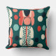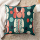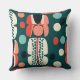 Introduce a sense of artistic curiosity to your seating area with this unique "Retro Shapes" throw pillow. The design features a charming arrangement of stylized "totem" pods and floating organic circles, reminiscent of 1950s abstract paper cutouts. A sophisticated palette of deep spruce green, vibrant coral, and soft mint is grounded by bold black accents and crisp cream highlights. Intricate stippled dot patterns within the shapes add a hand-crafted, artisanal texture, making this pillow a perfect blend of vintage whimsy and modern graphic design.