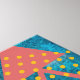 Bold retro shapes of Triangle's and dots over an abstract painting.