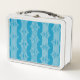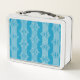 Retro Abstract White Lines on Blue Pattern Metal Lunch Box