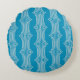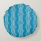 Retro Abstract White Lines on Blue Pattern Round Cushion