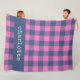 Personalised Name Retro Aesthetic Chequerboard Pattern Blue and Pink Fleece Blanket
