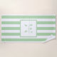 Create your own personalised beach towel featuring your custom monogram initial and name on a retro striped background in aesthetic green and white colour