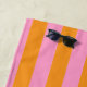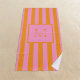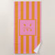 Create your own personalised beach towel featuring your custom monogram initial and name on a retro striped background in aesthetic pink and orange colour