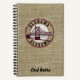 Fun personalised recipe notebook features faux burlap background with round travel style stamp of the Mobile Alabama bridge in silhouette. Great Father's Day gift idea - just add name or monogram!
