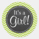 Retro Apple Green Chevron Stripes; Chalkboard look Classic Round Sticker