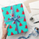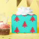 Set off your green Christmas theme and decor by wrapping your gifts in this Retro Aqua And Red Christmas Trees Wrapping Paper. This is a bold bright colourful design with an aqua background and small red Christmas tree silhouette pattern.