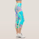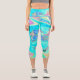 Retro Aqua Blue Liquid Art on Abstract Hydrangeas Capri Leggings