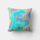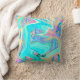 Retro Aqua Blue Liquid Art on Abstract Hydrangeas Cushion