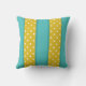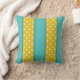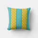 Retro Aqua Blue Yellow Polka Dot Stripes Pattern Cushion