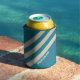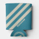 Retro Aquamarine Three Stripes with Name Can Cooler
