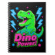 This 90s arcade-style T-Rex notebook features a pixelated green dinosaur with electric blue and hot pink accents. It brings 'Dino Power!' to life with a nostalgic, slightly distressed texture.