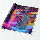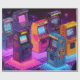 A group of vintage arcade machines stands illuminated by vibrant neon lights. The scene is set against a backdrop of a starry galaxy, creating a nostalgic yet futuristic atmosphere.