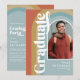 Celebrate the graduate with these cool graduation party invitations! Featuring a boho vintage coloured rainbow arch backdrop, a photo of the grad, and a retro text template that is easy to personalise.
