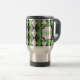 Argyle goes retro 8-bit with this green, grey, white, and black colour scheme which hearkens back to old-school arcade games. Customise the monogram with the appropriate initials for a personalised touch. This mug is available in a variety of colours, styles, and sizes.