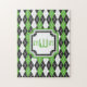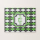 Argyle goes retro 8-bit with this green, grey, white, and black colour scheme which hearkens back to old-school arcade games. Customise the monogram with the appropriate initials for a personalised touch.