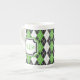 Argyle goes retro 8-bit with this green, grey, white, and black colour scheme which hearkens back to old-school arcade games. Customise the monogram with the appropriate initials for a personalised touch. This mug is available in jumbo, espresso, and bone china sizes and styles.