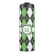 Argyle goes retro 8-bit with this green, grey, white, and black colour scheme which hearkens back to old-school arcade games. Customise the monogram on this tumbler with your initial to create a unique container for your beverages.