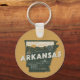 Stylish keychain features retro style Arkansas state silhouette and lettering. Customise with name or message on back.