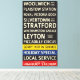 a retro bus scroll with actual London locations starting with Woolwich and terminating at Highbury Stadium, the vintage home of Arsenal FC