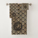 retro art deco black and sepia bathroom bath towel set with bath towel, wash cloth and hand towel. A rich geometric fan pattern design. This style looks great with black faucets, art deco posters and black rugs. If you want a rich contrast, try this style to refresh your bathroom decor. See the full collection at: https://www.zazzle.com/collections/119583979470664234