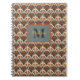 This art deco style notebook features architectural arches in retro colours of blue-grey, orange, gold, and bluish black. Your name and initial monograms are superimposed on a colorblock of the dusty teal blue grey. Make sure to type your name and initial in the Personalise section.