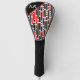 Enhance your set of golf clubs with a custom-made golf head cover. Retro Art Deco Red Black Abstract Pattern Design Monogrammed Golf Head Cover. Great gift idea for the golfer.