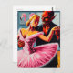 AI generated art of a devil dancing with a pink flamingo dancer with pink flamingo art on the studio wall