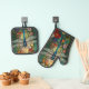 Retro art nouveau dragonfly boho chic oven mitt & pot holder set