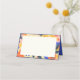 Retro Artsy Abstract Botanical Cute Wedding Blank Place Cards in Blue, Orange, Pink, and Yellow