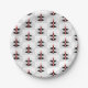Retro Atomic Art style design features red/white/black "baubles" centred between a four-dimension tower of geometric planes on grey colorblock background
