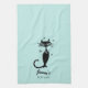 Fifties retro look black cat personalised aqua kitchen towel gift idea fifties style.