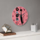 The clock is the perfect addition to my cat/laundry room. The pink is a bright vibrant color, and all printing is clear and concise. This matches purrfectly with my MCM Cool Cat tile I had installed in my remodel. I did not have any custom printing done but ordered the clock as is.