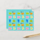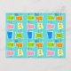 This Retro Atomic Kitsch Postcard features so many kitschy shapes and so many kitschy patterns. The Palm Springs inspired pattern features a turquoise background and oodles of wonderfully 1960’s line drawings. It’s almost too cute to describe! A vintage, pink shape features a retro trailer and car. A yellow block features a juke box. A blue shape features a sophisticated woman carrying a martini. A green space age shape holds a starburst clock and a classic television set. A lime block has a cat and a mid century modern record player. And an orange shape features a classic finned car and a roadside diner sign. What’s not to love?