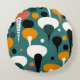 Infuse your home with the playful, "Googie" aesthetic of the 1950s with this "Retro Shapes" throw pillow. Featuring stylized, mushroom-like silhouettes and floating atomic orbs, this design captures the optimistic energy of the space age. The vibrant palette of ochre yellow, muted coral, and crisp white pops against a sophisticated deep teal background, while sharp black accents provide a bold graphic contrast. This whimsical yet refined pattern is a perfect conversation piece for any mid-century modern lounge or creative studio.