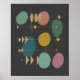 A retro atomic space age design in fun colours and a 1950s mid century modern style. Background colour can be customised.