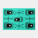 This mid century modern style art pattern has abstract geometric shapes that resemble old fashioned televisions, as well as sputnik starbursts which is a staple of 1950s designs.